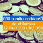 - ทีทีบี คาดเงินบาทสัปดาห์นี้ อ่อนค่าในกรอบ 32.10–33.00 บาทต่อดอลลาร์ สหรัฐฯ หลังดอลลาร์แข็งค่าจากปัจจัยภูมิรัฐศาสตร์