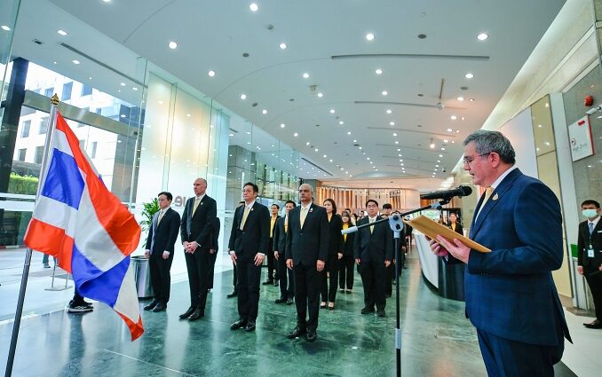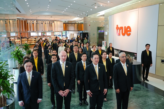 กรุงเทพฯ 26 กันยายน 2568 – บมจ. ทรู คอร์ปอเรชั่น ร่วมจัดกิจกรรมเคารพธงชาติ เนื่องในโอกาสครบรอบ 108 ปี วันพระราชทานธงชาติไทย โดยมี นายจักรกฤษณ์ อุไรรัตน์ หัวหน้าคณะผู้บริหารด้านรัฐกิจสัมพันธ์ บมจ. ทรู คอร์ปอเรชั่น พร้อมด้วย นายมนัสส์ มานะวุฒิเวช หัวหน้าคณะผู้บริหารด้านประสบการณ์ลูกค้าและธุรกิจรีเทล นายชารัด เมห์โรทรา หัวหน้าคณะผู้บริหารด้านกลุ่มธุรกิจลูกค้าบุคคล นายฮากุน บริวเช็ท เชิร์ล หัวหน้าคณะผู้บริหารด้านกลยุทธ์และทรานสฟอร์มเมชั่น นายนิติธรรม โกวิทกูลไกร หัวหน้าสายงานด้านผลิตภัณฑ์และบริการ พร้อมด้วยคณะผู้บริหารและเพื่อนพนักงาน ร่วมกันยืนตรงเคารพธงชาติและร้องเพลงชาติไทยอย่างพร้อมเพรียงกัน ณ อาคารทรู ทาวเวอร์ ถนนรัชดาภิเษก เวลา 8.00 น. ซึ่งกิจกรรมดังกล่าวจัดขึ้นเพื่อน้อมรำลึกถึงพระมหากรุณาธิคุณของพระบาทสมเด็จพระมงกุฎเกล้าเจ้าอยู่หัว รัชกาลที่ 6 ผู้พระราชทานธงไตรรงค์เป็นธงชาติไทยเมื่อวันที่ 28 กันยายน พ.ศ. 2460 นับเป็นสัญลักษณ์อันสูงสุดของชาติ สะท้อนถึงความเสียสละของบรรพบุรุษผู้ปกป้องรักษาแผ่นดินไทย และตอกย้ำพลังใจของคนไทยที่ยืนหยัดเคียงข้างชาติ ศาสนา และพระมหากษัตริย์ ทั้งนี้ ทรู คอร์ปอเรชั่น ได้ร่วมสืบสานกิจกรรมดังกล่าวมาอย่างต่อเนื่อง เพื่อแสดงออกถึงความภาคภูมิใจ ความจงรักภักดีต่อสถาบันหลักของชาติ ความสามัคคีและความมุ่งมั่นขององค์กร ในการขับเคลื่อนธุรกิจโทรคมนาคม-เทคโนโลยี เพื่อสร้างคุณประโยชน์สูงสุดให้กับคนไทยและประเทศไทยอย่างยั่งยืน
