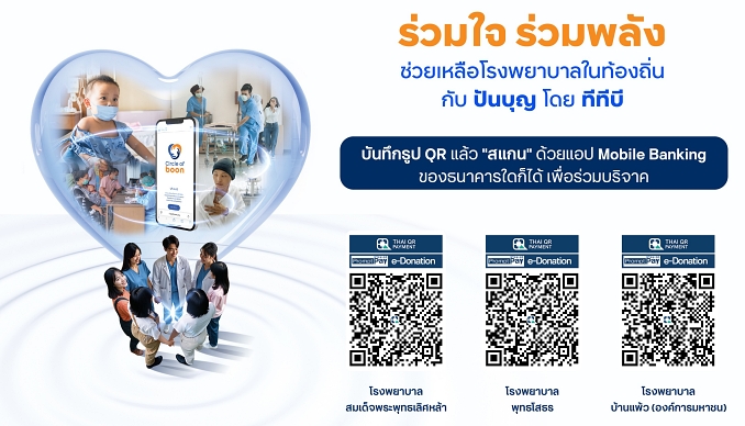 เพราะพลังแห่งการให้ เป็นวัฏจักรที่ไม่มีวันสิ้นสุด ทีทีบียกระดับบทบาทของธนาคารในฐานะผู้ขับเคลื่อนความยั่งยืนของสังคม กับการระดมเงินบริจาคเพื่อโรงพยาบาลท้องถิ่น ผ่านโครงการ “Circle of boon วัฏจักรพลังการแบ่งปัน” ที่ดำเนินการภายใต้ “ปันบุญ โดย ทีทีบี” ซึ่งผู้มีจิตศรัทธาสามารถร่วมบริจาคได้ทุกที่ทุกเวลา ผ่านเว็บไซต์ Punboon.org ที่ปลอดภัย เชื่อถือได้ และมีความโปร่งใสทุกขั้นตอน ให้ผู้บริจาคมั่นใจได้ว่า เงินทุกบาทส่งตรงถึงโรงพยาบาลอย่างแท้จริง และโรงพยาบาลท้องถิ่นได้ลงทะเบียน e-Donation กับกรมสรรพากร จึงเป็นทางเลือกให้ผู้บริจาคในการลดหย่อนภาษี 2 เท่าของเงินบริจาคอีกด้วย ขอเชิญชวนทุกคนมาร่วมเป็นส่วนหนึ่งของ “Circle of boon” วัฏจักรพลังแห่งการแบ่งปัน ทุกบาทของคุณสามารถเปลี่ยนชีวิตผู้ป่วยได้จริง และยั่งยืน