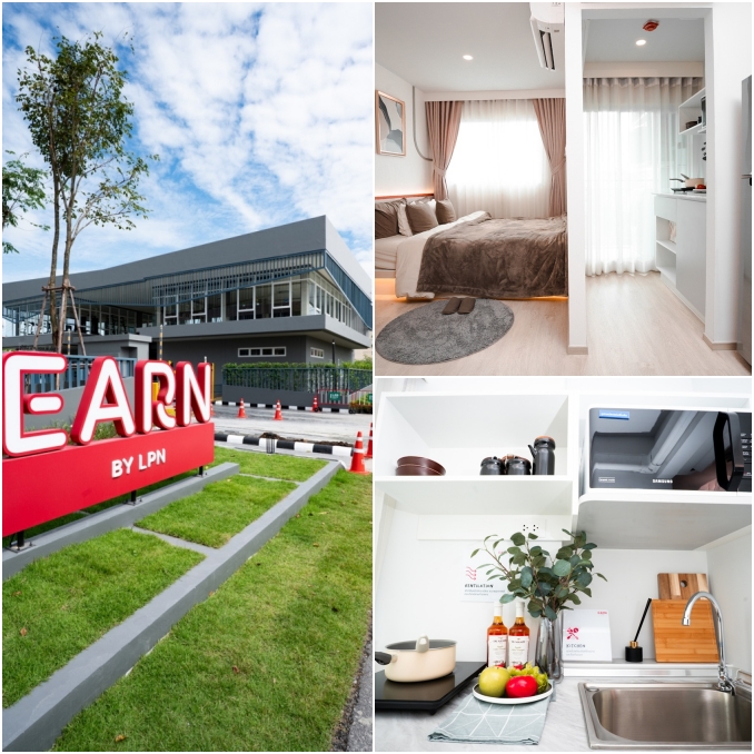 EARN by LPN เป็นคอนโดมิเนียม Low rise สูง 8 ชั้น จำนวน 6 อาคาร และสูง 6 ชั้น 1 อาคาร จำนวน 1,810 ยูนิต ตั้งอยู่บนพื้นที่กว่า 20 ไร่ ใจกลางนิคมอมตะ ชลบุรี ภายใต้แนวคิด “อยู่ ‘เอิร์น’ชีวิตเพลินกว่าใคร” Joyful Living at EARN ราคาเริ่มต้นเพียง 999,000 บาท เจาะกลุ่มคนวัยทำงานรุ่นใหม่ที่มองหาที่พักอาศัยคุณภาพรวมถึงกลุ่มนักลงทุนที่ต้องการผลตอบแทนคุ้มค่า เฉลี่ย 7-9% ต่อปี ด้วยที่ตั้งทำเลใจกลางนิคมอมตะนคร นิคมอุตสาหกรรมใหญ่อันดับ 1 ของประเทศไทย ที่มีีการเติบโตอย่างต่อเนื่อง และเป็นแหล่งรวมของบริษัทต่างๆ กว่า 800 แห่ง ทั้งบริษัทไทยและต่างชาติ พื้นที่ใช้สอยของห้องมีขนาดเริ่มต้นตั้งแต่ 24 – 36 ตร.ม. แบ่งเป็นห้องสตูดิโอ, ห้องแบบ 1 ห้องนอน และ 1 ห้องนอน พลัส โดยแต่ละรูปแบบมีการออกแบบที่ตอบโจทย์ความต้องการของผู้อยู่อาศัยที่หลากหลาย พร้อมฟังก์ชั่นห้องรูปแบบ Combine ที่สามารถเพิ่มพื้นที่ใช้สอยได้เป็นขนาด 2-3 ห้องนอน รายล้อมด้วยพื้นที่สีเขียวกว่า 6 ไร่ และสิ่งอำนวยความสะดวกครบครันรอบโครงการ