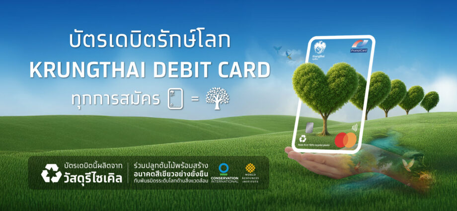 ธนาคารกรุงไทย ตอกย้ำความมุ่งมั่นในการขับเคลื่อนสังคมไทยสู่ความยั่งยืน จับมือ มาสเตอร์การ์ด และพันธมิตรระดับโลก Conservation International (CI) และ World Resources Institute (WRI) เปิดตัว “บัตรเดบิตกรุงไทย มาสเตอร์การ์ด ลายรักษ์โลก” ภายใต้โครงการ Priceless Planet Coalition (PPC) ซึ่งเป็นความร่วมมือระดับนานาชาติของมาสเตอร์การ์ด ที่ตั้งเป้าปลูกต้นไม้ 100 ล้านต้นทั่วโลก รวมถึงประเทศไทย โดยทุกการสมัครบัตร 1 ใบ เท่ากับการร่วมปลูกต้นไม้ 1 ต้น เพื่อเพิ่มพื้นที่สีเขียวและคืนสมดุลให้กับธรรมชาติ