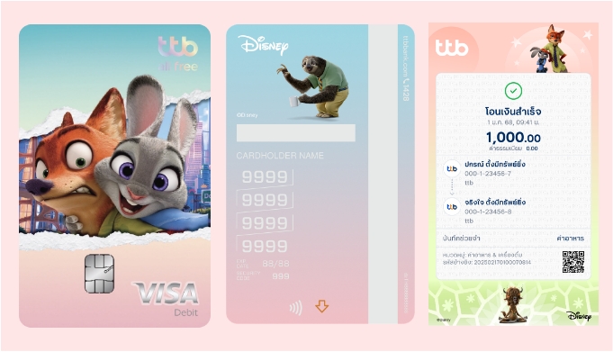 ทีทีบี เปิดตัวบัตรเดบิต ทีทีบี ออลล์ฟรี ดิสนีย์ ลายใหม่ “Zootopia Limited Edition” ต้อนรับกระแสภาพยนตร์ Zootopia 2 พร้อม e-Slip 3 ลายพิเศษ และสิทธิประโยชน์คุ้มค่าตอบโจทย์ทุกไลฟ์สไตล์