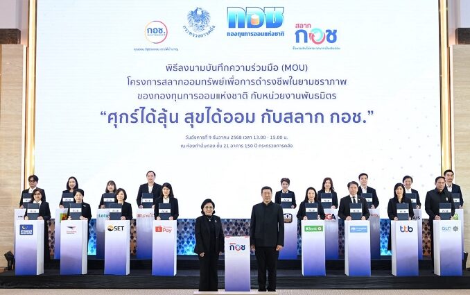 กองทุนการออมแห่งชาติ (กอช.) จัดงานแถลงข่าวบันทึก ความร่วมมือ (MOU)โครงการสลากออมทรัพย์เพื่อการดำรงชีพในยามชราภาพของกองทุนการออมแห่งชาติ กับหน่วยงานพันธมิตร “ศุกร์ได้ลุ้น สุขได้ออม กับสลาก กอช.” เพื่อยกระดับ การออม ของคนไทยเข้าสู่การออมผ่านดิจิทัล ที่สะดวก รวดเร็ว ครอบคลุมทุกช่องทาง ทุกพื้นที่ พร้อมลุ้นรางวัล ใหญ่ 1 ล้านบาททุกสัปดาห์ ณ ห้องกำปั่นทอง ชั้น 21 อาคาร 150 ปี กระทรวงการคลัง โดยภายในงานยังได้ เปิดตัวแอปพลิเคชัน กอช. รูปแบบใหม่ที่จะสามารถ ทำธุรกรรม เปิดบัญชี ติดตามเงินออม ข้อมูลข่าวสารของ สมาชิก กอช. รวมถึงการจำหน่ายสลาก กอช. ในอนาคต ด้วย