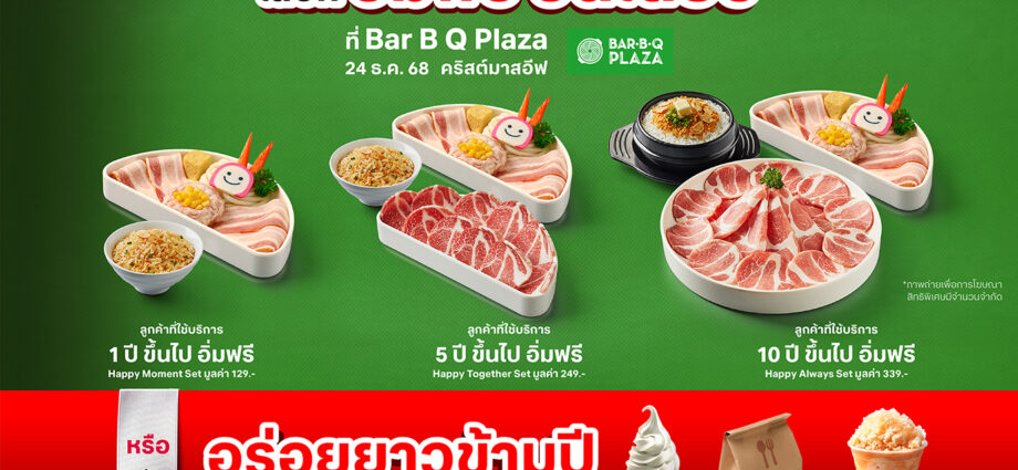 สุขด้วยกันวันคริสต์มาสอีฟ 24 ธันวาคม ที่บาร์บีคิว พลาซ่า เพราะมื้ออาหารคือช่วงเวลาที่ดีที่สุดในการกระชับความสัมพันธ์ ทรูผนึกกำลังกับ บาร์บีคิว พลาซ่า มอบมื้อพิเศษให้ลูกค้าอิ่มฟรีพร้อมกันทั่วประเทศใน วันคริสต์มาสอีฟ 24 ธันวาคม 2568 (วันเดียวเท่านั้น) เพื่อสร้างความทรงจำที่อบอุ่นร่วมกับคนสำคัญ