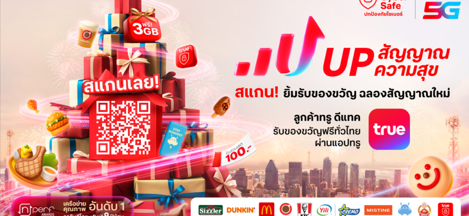 ช่วงเวลาสิ้นปี… ช่วงเวลา… ที่สัญญาณความสุข ถูกส่งถึงกันมากที่สุด ทรู คอร์ปอเรชั่น มุ่งมั่น ทุ่มเท UP สัญญาณ ยกระดับมาตรฐานใหม่ สู่การเป็นคลื่นเดียวที่ ปลอดภัยกว่า เร็วแรงกว่า พร้อม UP ความสุข มอบของขวัญที่จะทำให้ทุกคนยิ้มข้ามปีไปด้วยกันไปกับกิจกรรม “TRUE 5G UP สัญญาณ UP ความสุข ยิ้มรับของขวัญ ฉลองสัญญาณใหม่” ที่จะเปลี่ยนทุกรอยยิ้มให้กลายเป็นของขวัญมากมายผ่านประสบการณ์ดิจิทัลสุดล้ำเพียงแค่ “เปิดแอปทรู” แล้วคลิกที่แบนเนอร์กิจกรรม หรือ คลิก https://s.true.th/3aCz/HappyExp7 กด “รับของขวัญ” แล้ว”ยิ้ม” ให้กล้องก็รับของขวัญสุดเซอร์ไพรส์ได้ทันที พร้อมแล้วคลิกเลย ตั้งแต่วันนี้ ถึง 10 มกราคม 2569