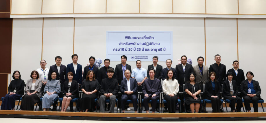 บริษัท กรุงเทพประกันภัย จำกัด (มหาชน) จัดพิธีมอบของที่ระลึกสำหรับพนักงานที่ปฏิบัติงานครบ 10 ปี 20 ปี 25 ปี และพนักงานเกษียณอายุ โดยมี นายชัย โสภณพนิช