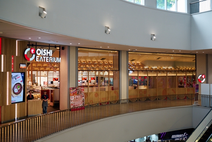 การออกแบบร้านใหม่ของโออิชิ อีทเทอเรียม ใช้พื้นที่เป็นเครื่องมือสื่อสารแบรนด์อย่างชัดเจน ตั้งแต่โทนสีสว่าง กราฟิกญี่ปุ่นร่วมสมัยไปจนถึงป้ายนีออนที่ชวนถ่ายภาพและแชร์บนโซเชียล