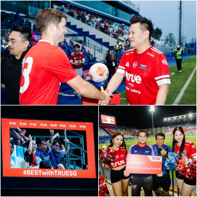 เกมใหญ่ที่แฟนบอลรอคอยกลับมาทำสนามลุกเป็นไฟอีกครั้ง เมื่อ ทรู แบงค็อก ยูไนเต็ด เปิดบ้านทรู บีจี สเตเดียม รับการมาเยือนของ เมืองทอง ยูไนเต็ด ในศึกไทยลีก 2025/26 ท่ามกลางบรรยากาศเชียร์สุดเดือดแบบ “แน่นทุกโซน” โดย ทรู คอร์ปอเรชั่น เดินหน้าสนับสนุนฟุตบอลไทยอย่างต่อเนื่อง ร่วมส่งแรงใจข้างสนาม นำโดย นายขจร เจียรวนนท์ ประธานสโมสรทรู แบงค็อก ยูไนเต็ด พร้อมด้วย บมจ.ทรู คอร์ปอเรชั่น โดย นายโอลิเวอร์ กิตติพงษ์ วีระเตชะ หัวหน้าคณะผู้บริหารด้านแบรนด์และมีเดีย ร่วมส่งพลังไปกับแฟนบอลที่พร้อมใจกันเชียร์สุดเสียงตั้งแต่นกหวีดแรก ทำให้บรรยากาศในสนามคึกคัก และสมศักดิ์ศรี “บิ๊กแมตช์ของจริง” พร้อมกันนี้ ทรูยังอัพสัญญาณ ทรู5G ให้ครอบคลุมทุกโซนของทรู บีจี สเตเดียม รองรับการใช้งานของแฟนบอลอย่างเต็มประสิทธิภาพ ทั้งการไลฟ์ แชร์โมเมนต์ และอัปโหลดความมันแบบเรียลไทม์ ด้วยสัญญาณแรงเร็ว เสถียรตลอดการแข่งขัน