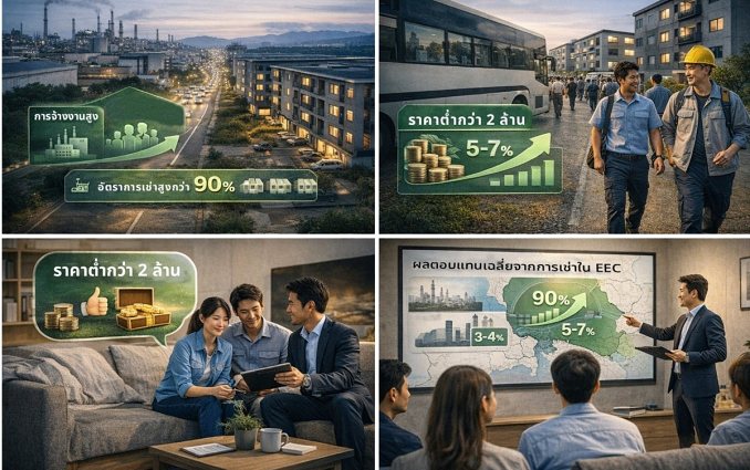 ตลาดที่อยู่อาศัยในพื้นที่นี้ผูกโยงโดยตรงกับโครงสร้างอุตสาหกรรมและกิจกรรมการจ้างงานจริง ข้อมูลตลาดอสังหาริมทรัพย์ระบุว่า ปัจจุบันพื้นที่ EEC มีโครงการอาคารชุดรวมมากกว่า 15,000 หน่วย และในบางทำเลมีอัตราการเช่าสูงกว่า 90% ขณะที่ผลตอบแทนจากการปล่อยเช่าเฉลี่ยอยู่ในช่วงประมาณ 5 – 7% ต่อปี ซึ่งถือว่าอยู่ในระดับที่น่าสนใจสำหรับการลงทุนในระยะกลางถึงระยะยาว โดยช่วงราคาที่ได้รับความสนใจมากที่สุดคือระดับต่ำกว่า 2 ล้านบาท สะท้อนความต้องการของแรงงานและพนักงานระดับปฏิบัติการไปจนถึงระดับหัวหน้างานที่ต้องการที่อยู่อาศัยใกล้สถานที่ทำงานในราคาที่ไม่สร้างภาระเกินความจำเป็น แตกต่างจากบางพื้นที่เมืองท่องเที่ยวหรือเมืองเศรษฐกิจที่มีความเสี่ยงด้านอุปทานล้นตลาด ความต้องการใน EEC ยังอาศัยฐานการจ้างงานที่เติบโตสอดคล้องกับการลงทุนในนิคมอุตสาหกรรม ทำให้ดีมานด์มีความเชื่อมโยงกับเศรษฐกิจจริงมากกว่าการเก็งกำไรระยะสั้น