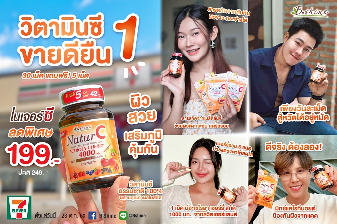 “บีไชน์ เนเจอร์ซี สูตรใหม่” ภูมิคุ้มกันดี ผิวสวยสดใส! พิเศษรับลมหนาว แบบซอง เพียง 39 บาท ที่เซเว่น อีเลฟเว่น ทุกสาขา!