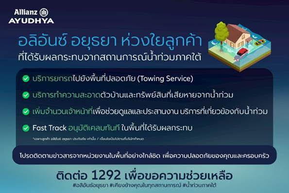 อลิอันซ์ อยุธยา ออกมาตรการเร่งด่วน ช่วยเหลือลูกค้าที่ได้รับผลกระทบจากน้ำท่วมภาคใต้